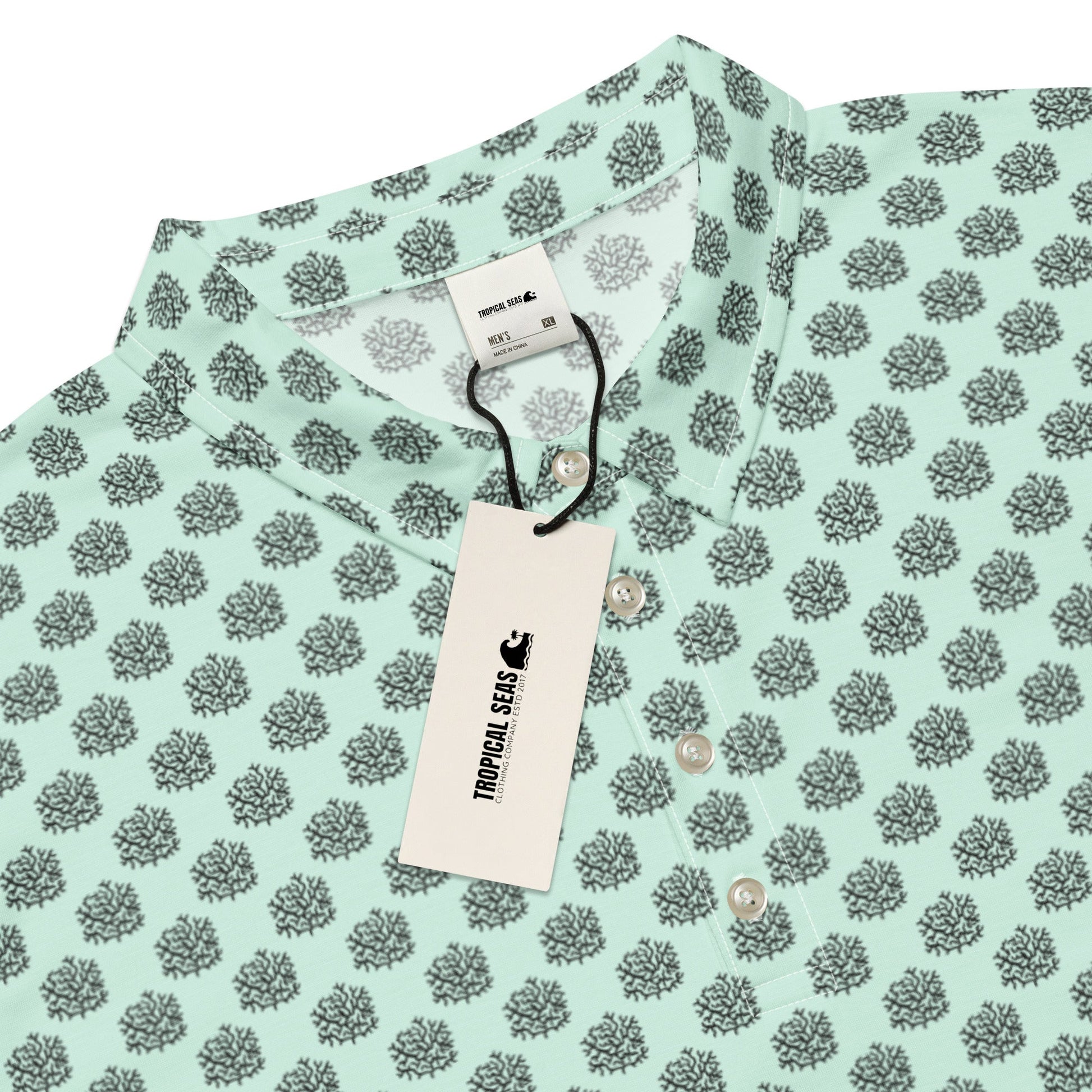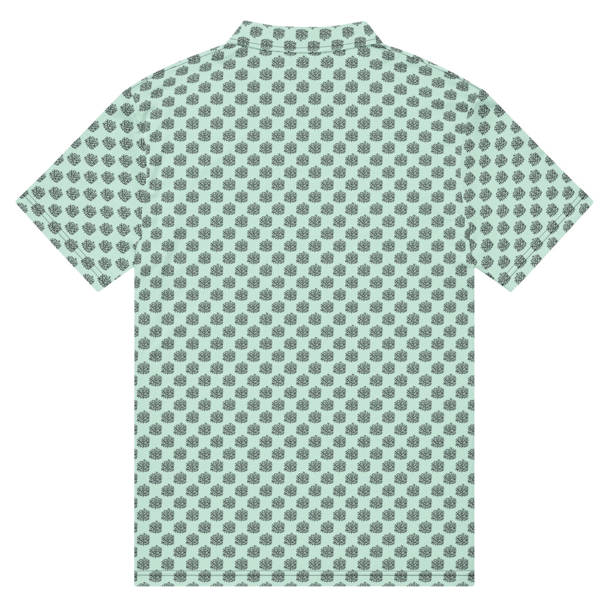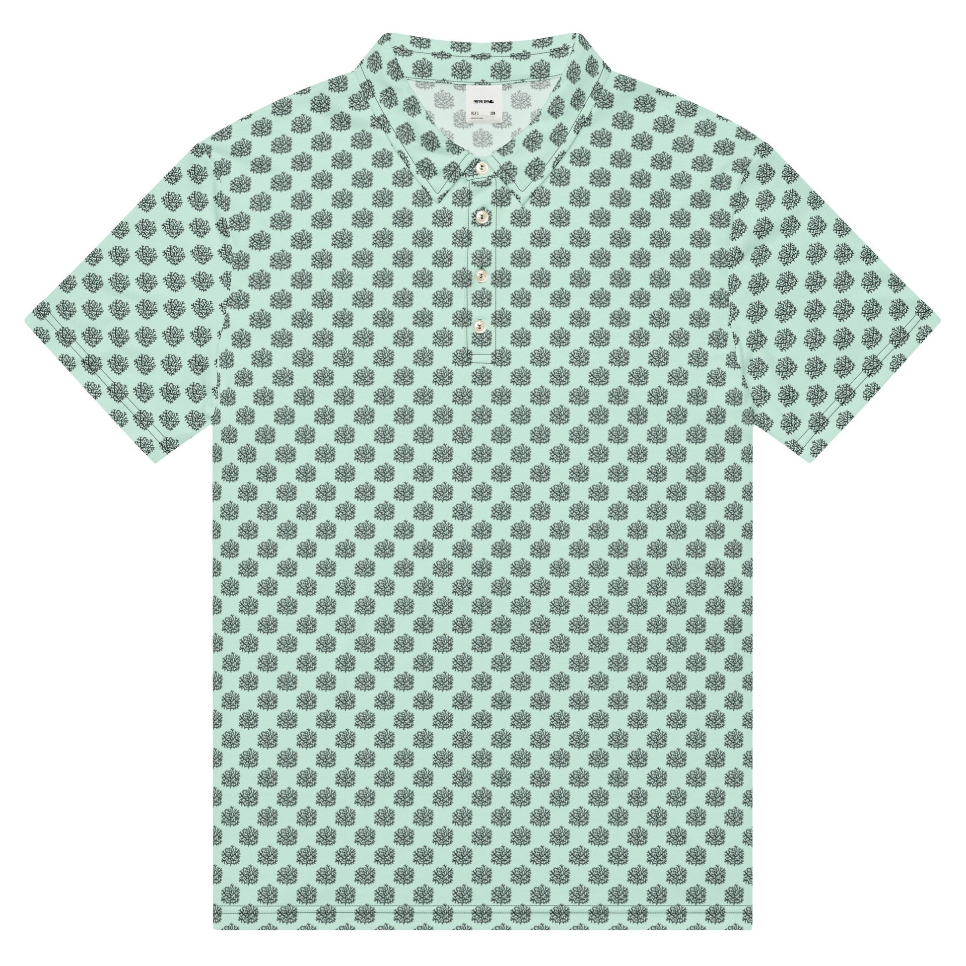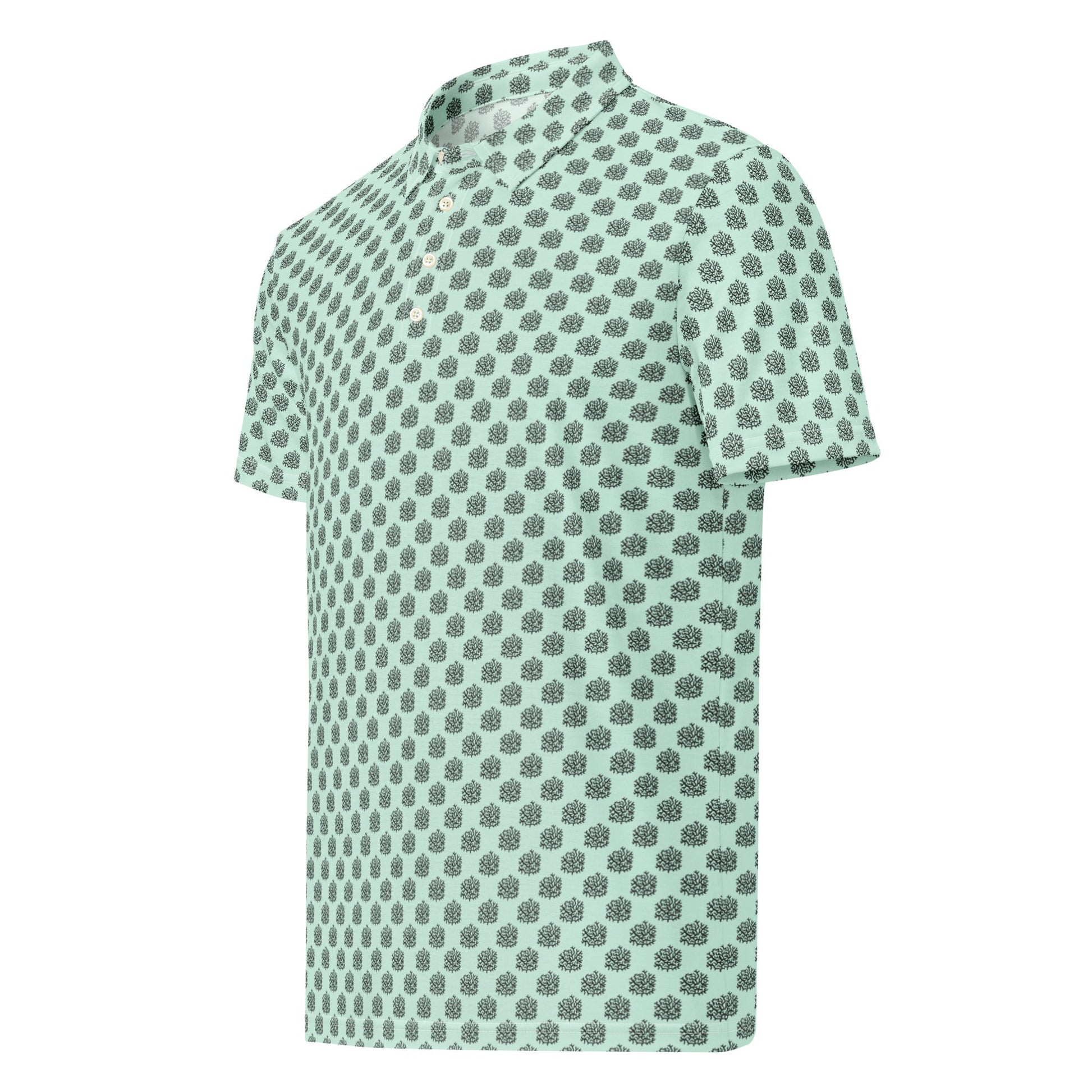 Men’s Slim Fit Golf Polo – Mint Coral Pattern, Breathable Athletic Shirt