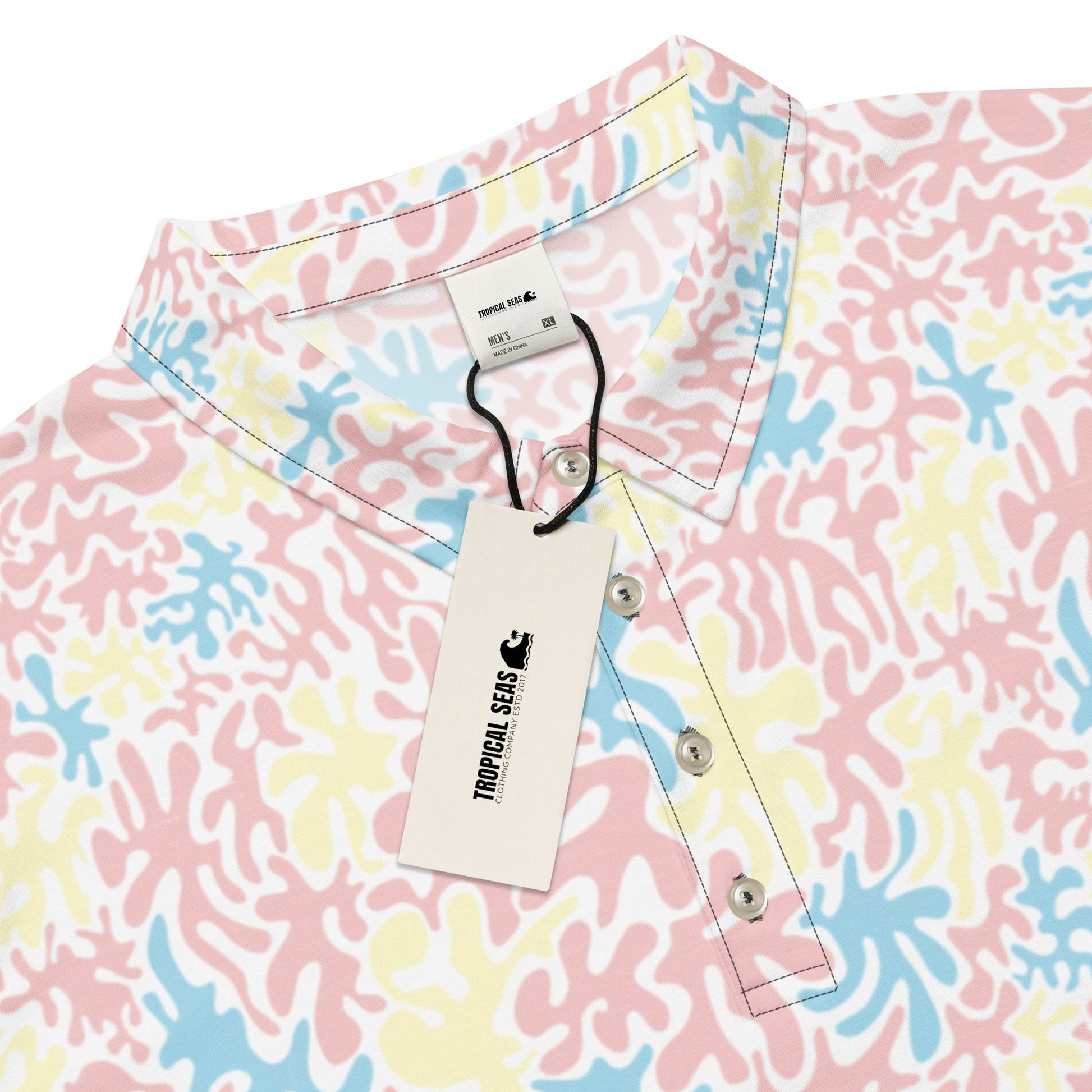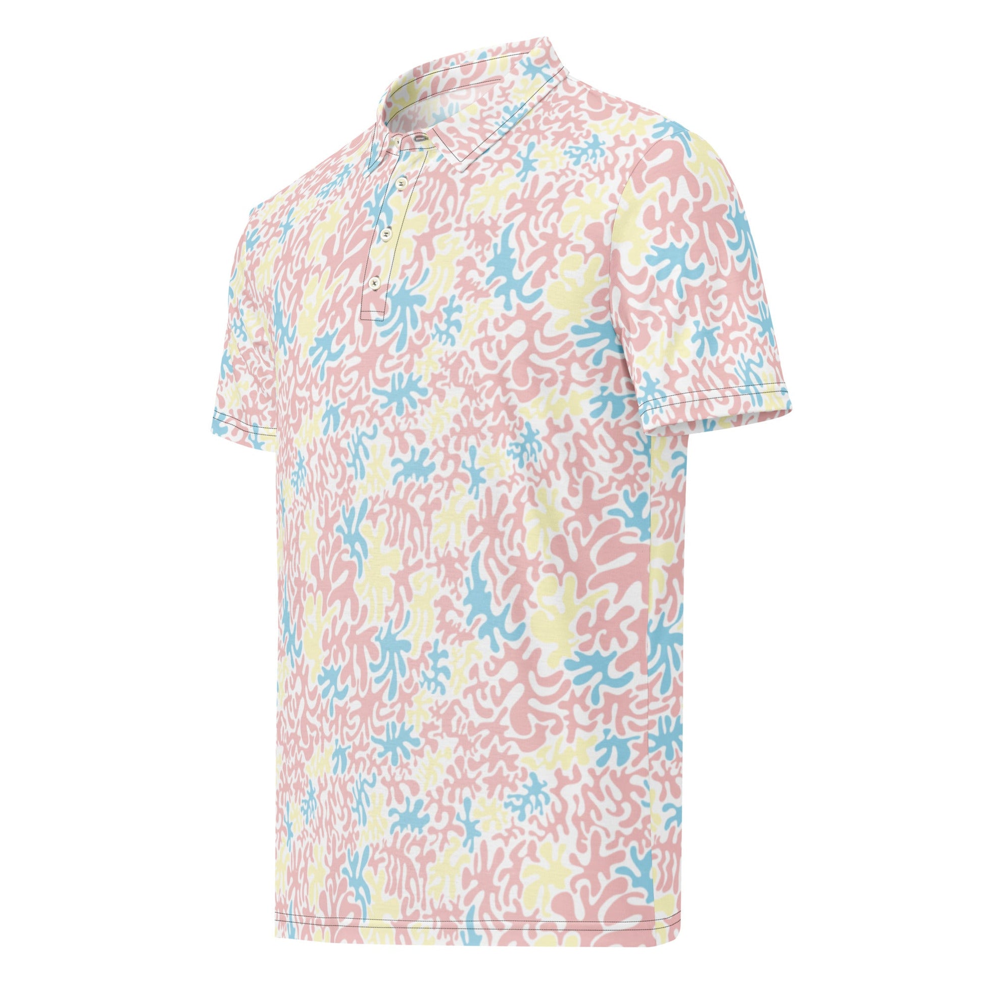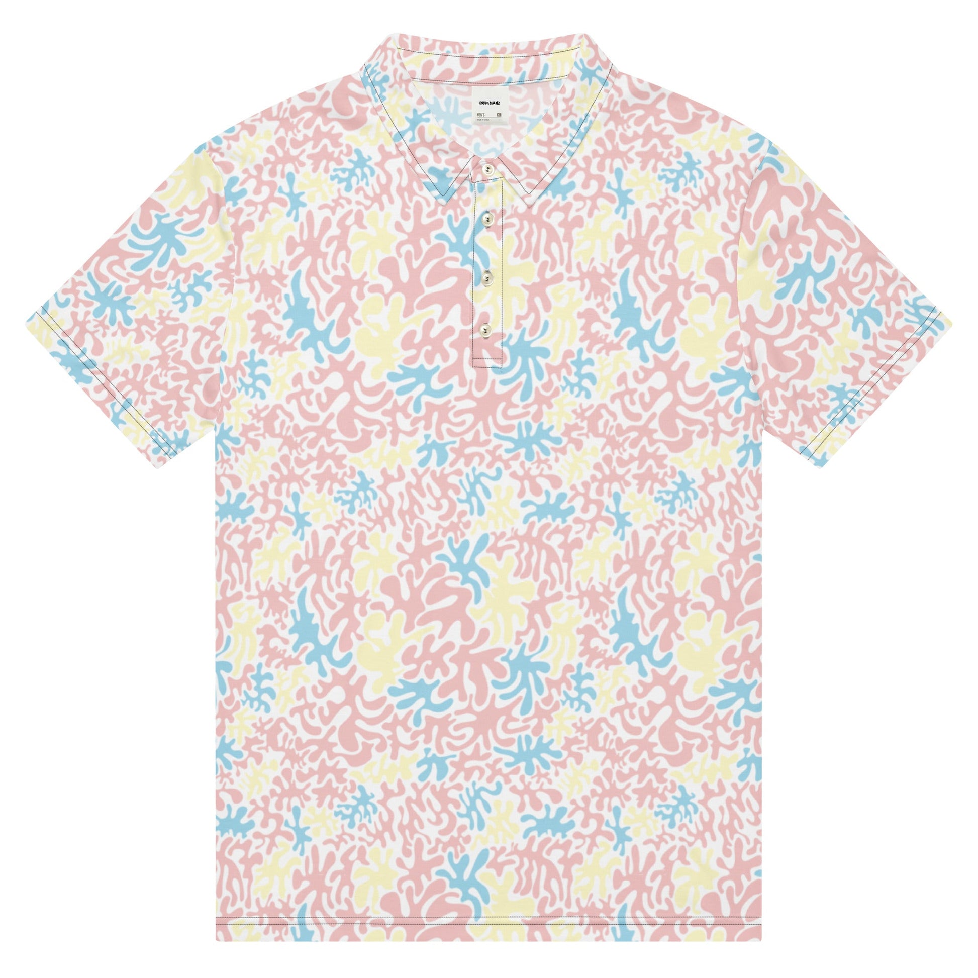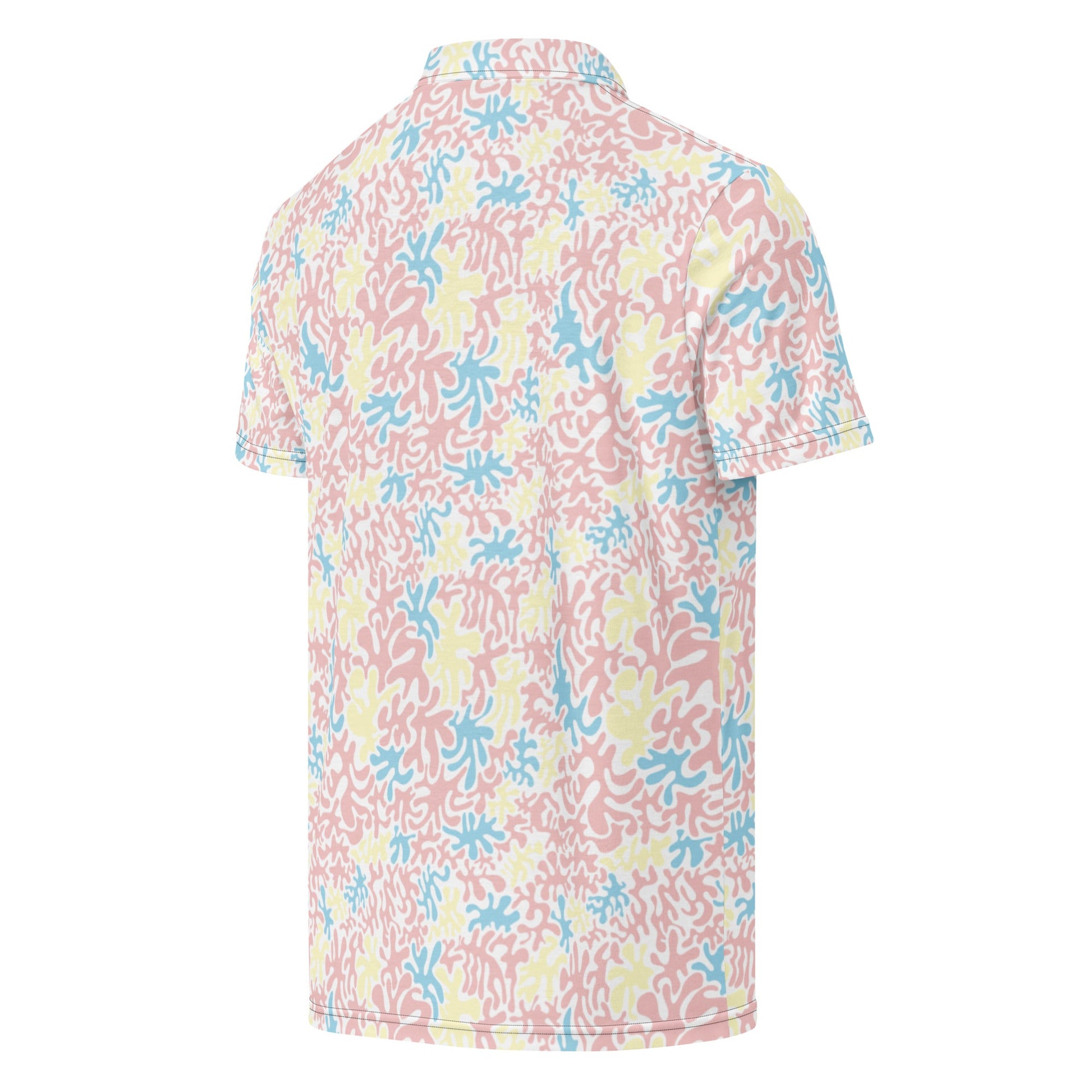 Brighten up your golf wardrobe with the "Powder Coral" slim fit golf polo. Featuring a vibrant, pastel coral pattern in soft shades of pink, blue, and yellow, this polo offers a playful yet sophisticated ocean-inspired aesthetic. Designed with a sleek slim fit and classic polo collar, it delivers a modern and polished look ideal for any occasion—from the office to the golf course. Made from lightweight, breathable fabric, it ensures you stay cool and comfortable throughout the day.