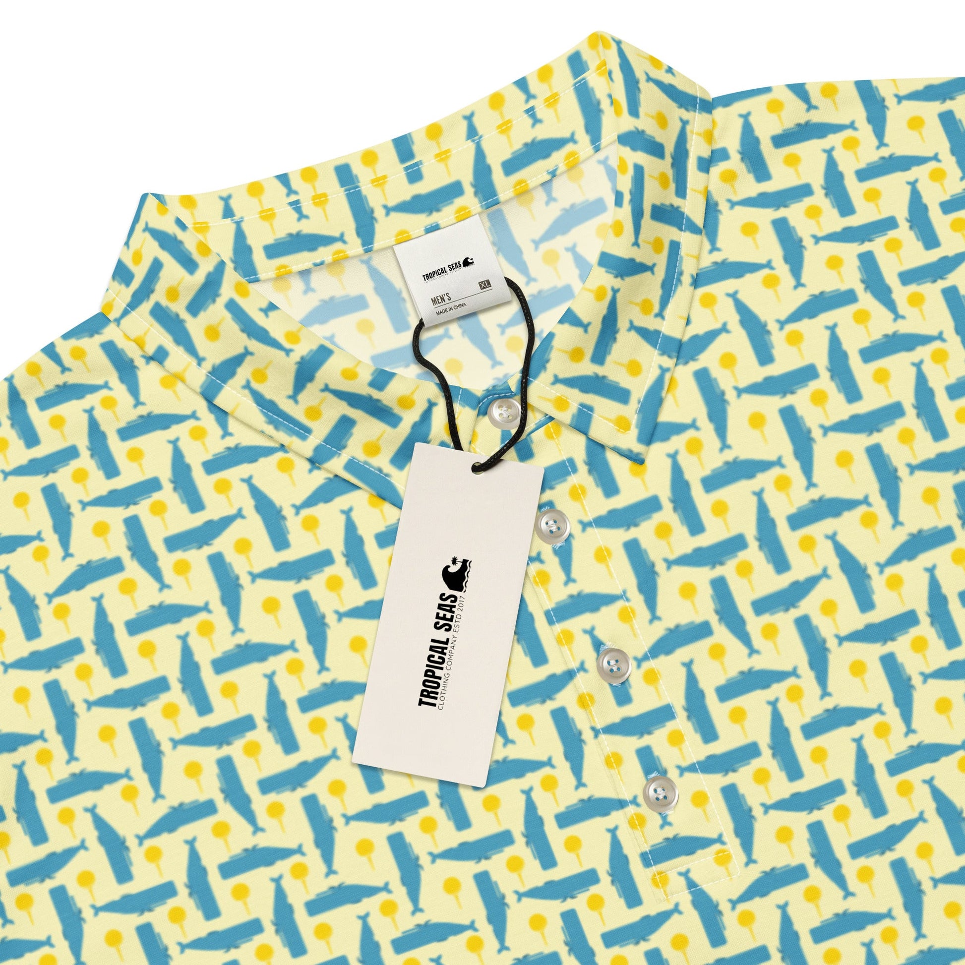 Men’s Slim Fit Golf Polo – Whale & Golf Tee Pattern